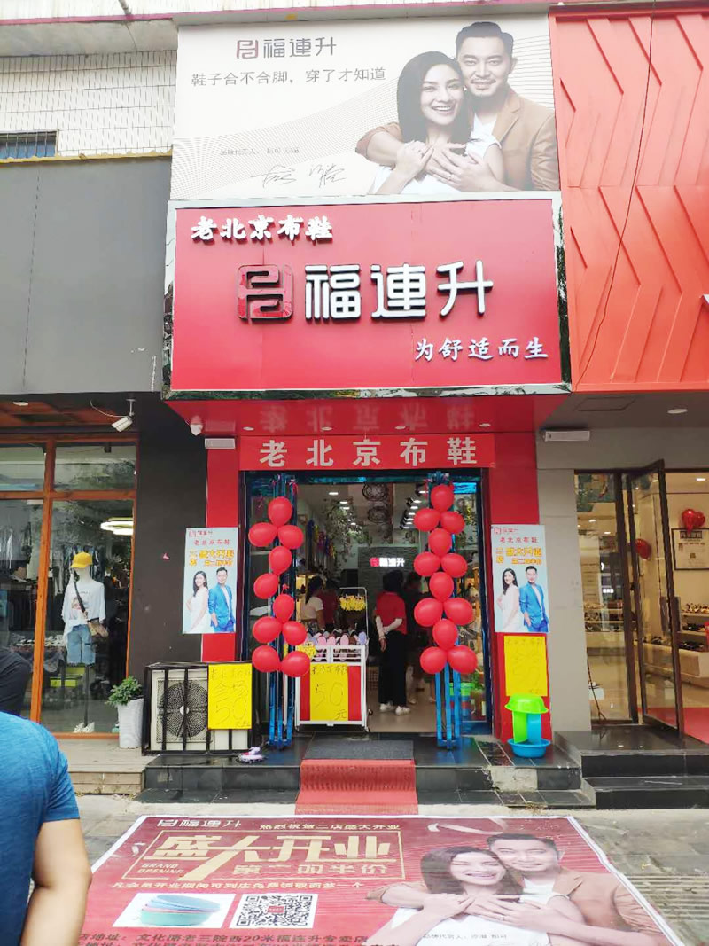 在此,福連升健康休閑中年鞋(原福連升(原福聯升)老北京布鞋)全體員工祝賀:福連升中年鞋河南尉氏文化路二店開業大吉、生意紅火、財源廣進!誠邀各地有志之士加盟合作,共享輝煌!