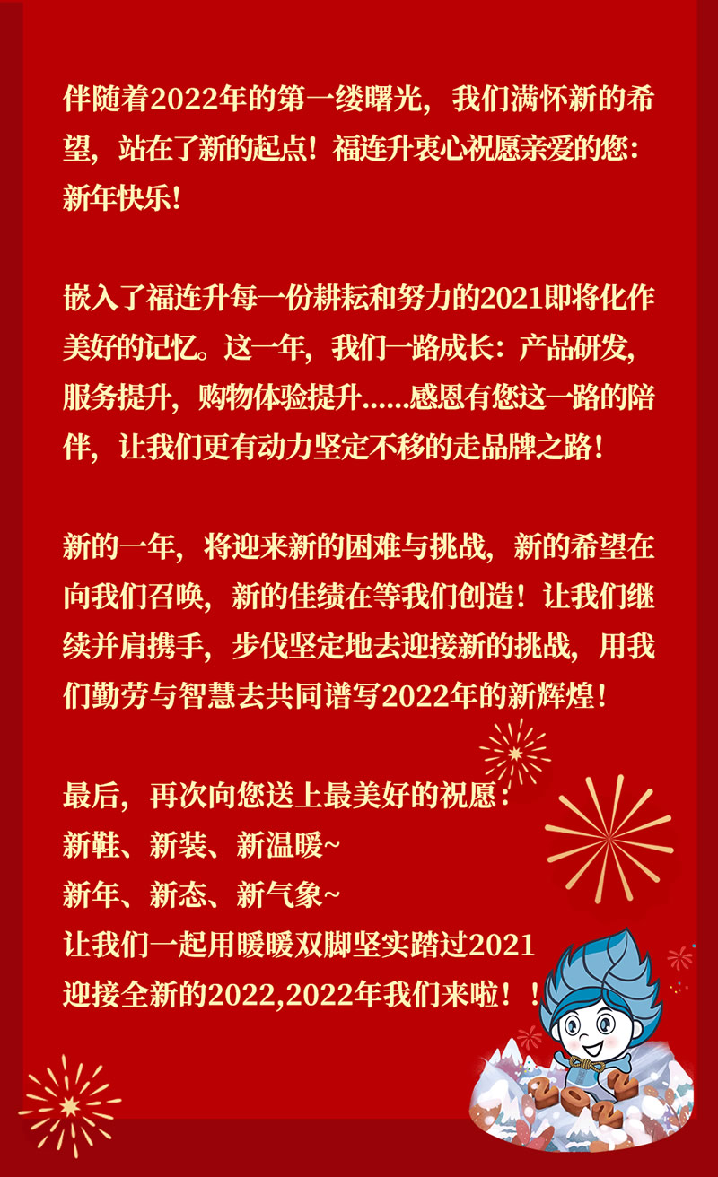 福連升祝全國(guó)人民新年快樂(lè)!2022不忘初心,堅(jiān)定品牌之路!