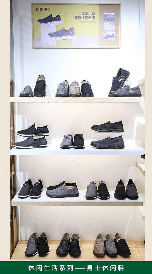 福連升2022春季店面陳列手冊,用多個系列實際產(chǎn)品陳列照片詳細講解了福連升休閑鞋專賣店產(chǎn)品的陳列方法,為廣大加盟商提供陳列參考。