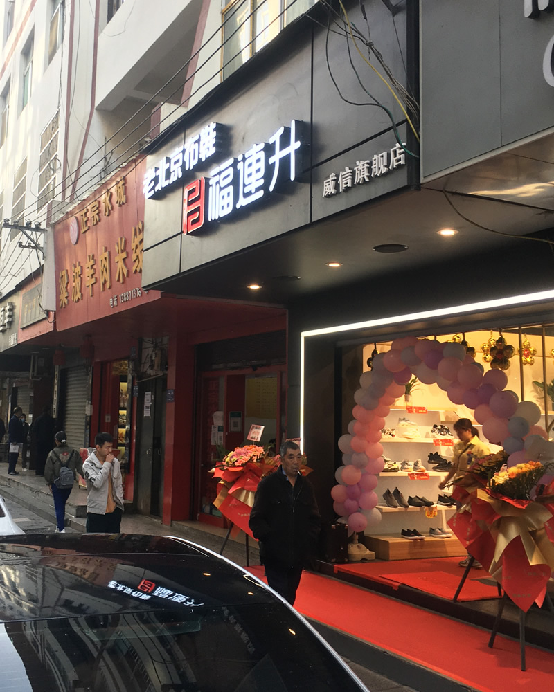 在此,福連升健康舒適休閑鞋(原福聯升老北京布鞋)全體員工祝賀:福連升老北京布鞋云南昭通威信縣后街店開業大吉、生意紅火、財源廣進!誠邀各地有志之士加盟合作,共享輝煌!